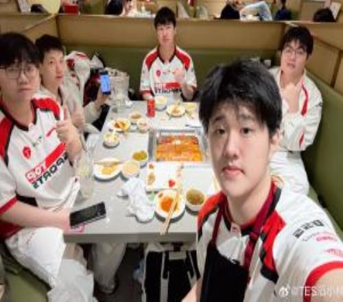 哥哥的参团率太高了!TES官方赛后晒选手聚餐返图:坚哥带上杰克吃一口
